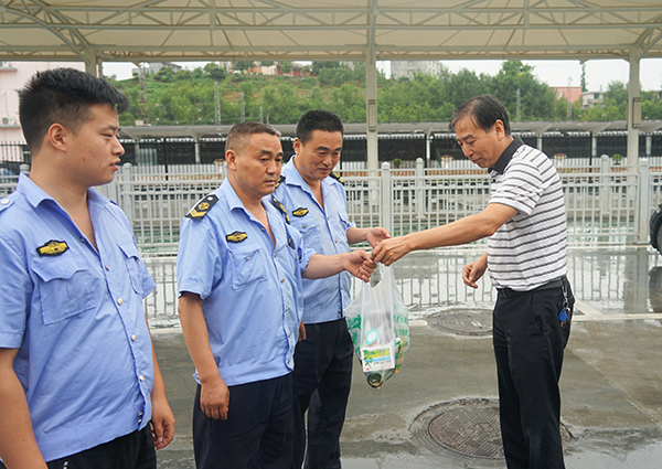在火車站調(diào)度室,張曉強一行檢查當(dāng)日帶班領(lǐng)導(dǎo)、值班人員在崗在位情況,了解值班值守落實制度、工作安排和落實等情況。為駕駛員送去了毛巾、菊花茶、花露水、風(fēng)油精等降溫物品,與他們一起拉家常,詳細詢問身體情況、工作和生活現(xiàn)狀,認真傾聽面臨的困難訴求和對當(dāng)前工作的意見建議,叮囑他們做好夏季防暑降溫、安全運營工作。