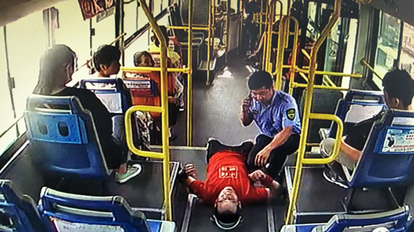 8月2日,市公交公司駕駛員王強(qiáng)像往常一樣,駕駛著6路公交車行駛在線路上,當(dāng)車行駛到天貿(mào)城站時,一男子突然倒在車內(nèi),王強(qiáng)見狀立即將車緩慢??吭谡九婆?,向暈倒男子方向跑去,一邊安撫他防止其睡著,一邊撥打120急救電話。這就出現(xiàn)了文章開頭的一幕。
